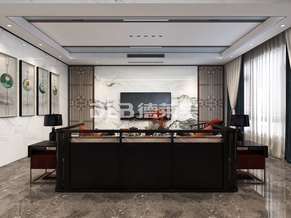 新中式-客厅顶墙一体